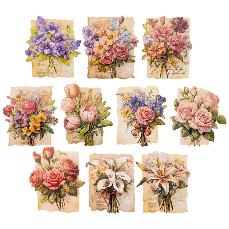 10 gotowych do użycia motywów 3D Kwiaty na papierze, w różnych rozmiarach i wzorach.
