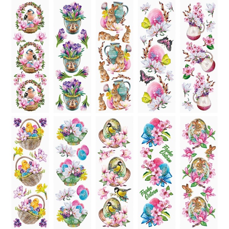 Przeźroczyste arkusze naklejek, Wielkanoc, różne wzory, 10 cm x 30 cm, 10 arkuszy