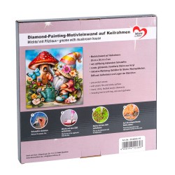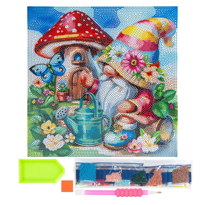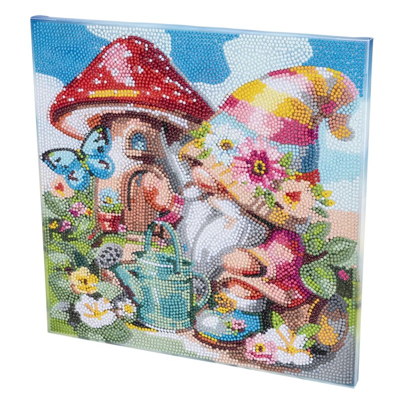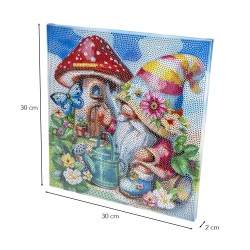 Obraz do malowania diamentami na blejtramie – Krasnal z muchomorem, 30x30 cm, zestaw z narzędziami