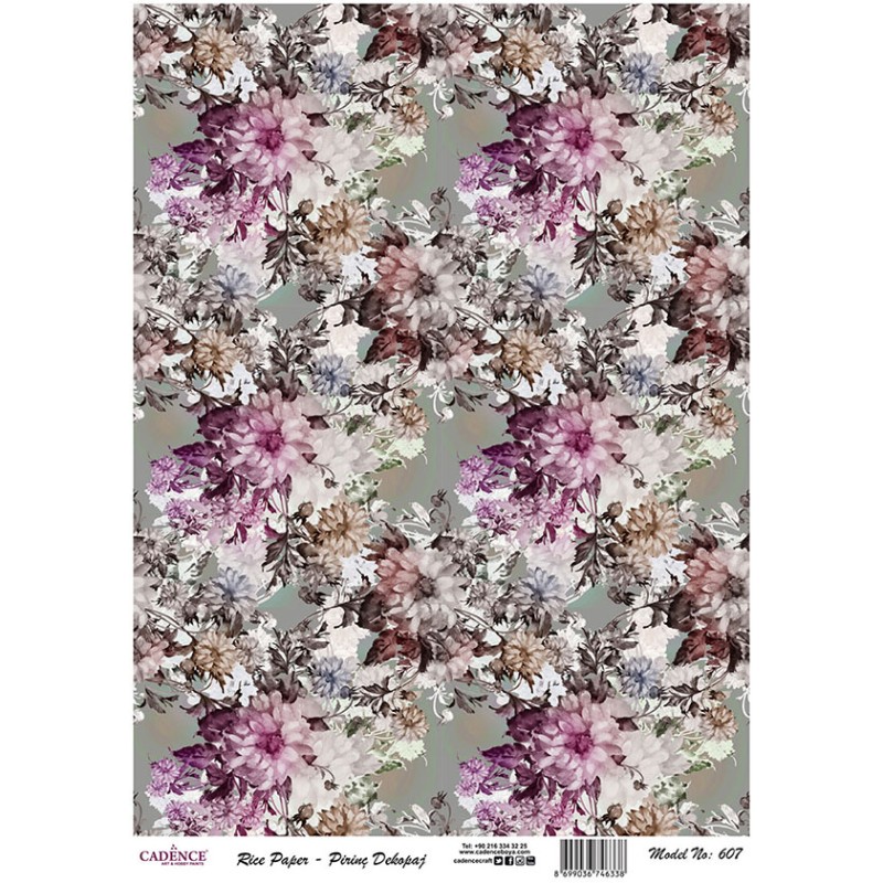 Papier ryżowy Cadence, kwiaty nr 607, A4