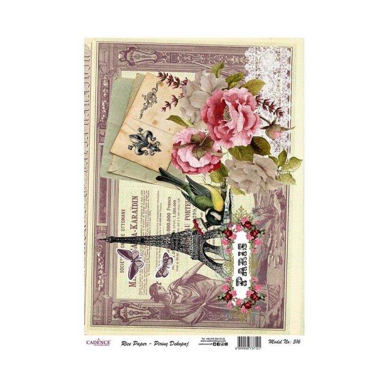 Papier ryżowy Cadence, kwiaty nr 607, A4