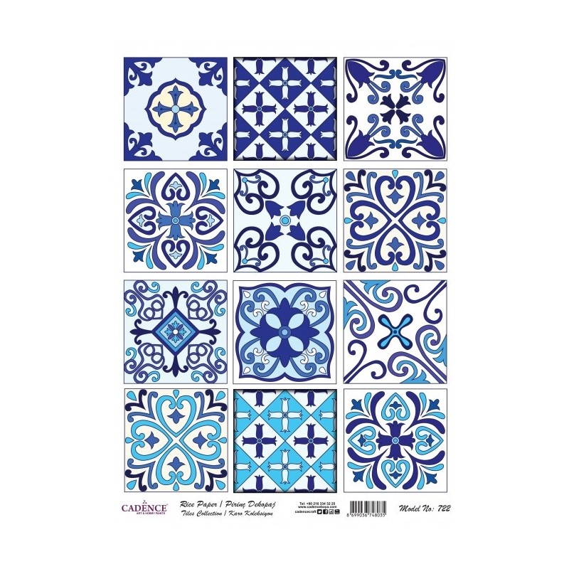 Papier ryżowy Cadence, patchwor niebieski, nr 722, rozm. A4