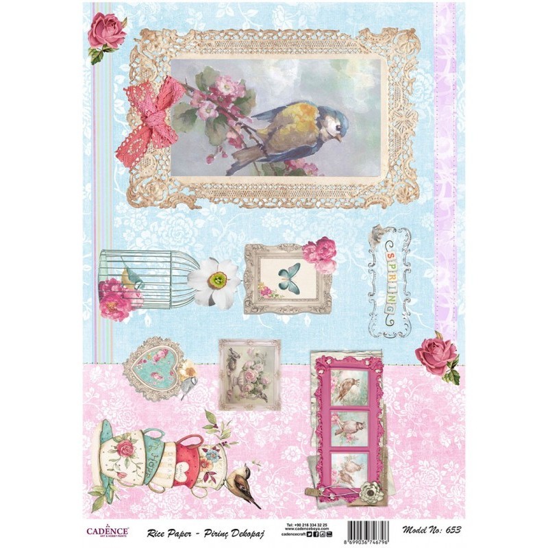 PAPIER RYŻOWY CADENCE A4 Papier ryżowy do decoupage jest łatwiejszy w użyciu niż serwetki. Nadaje się do dekorowania drewna, szkła, styropianu itp.. Wymiary 210 X 297 MM, 25g.