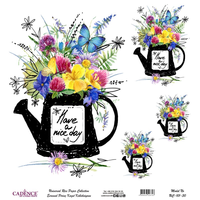 Papier ryżowy Cadence, Kwiaty w konewce, 30x30 cm