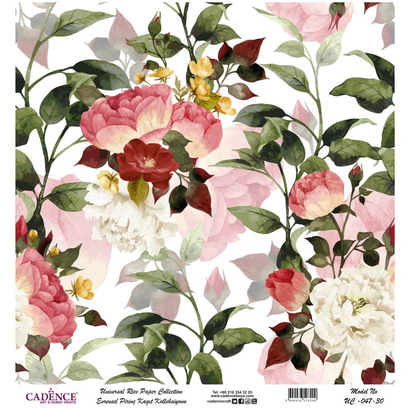 Papier ryżowy Cadence, Róże kolorowe,, rozm. 90x90 cm, UC047