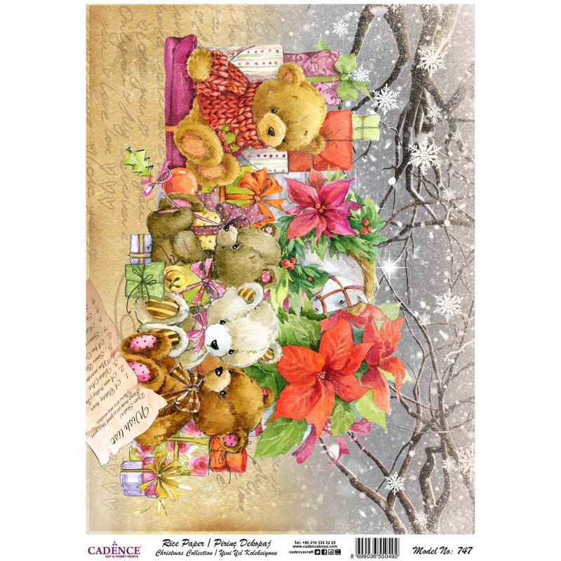 Papier ryżowy świąteczny Cadence, rozm. 30x42 cm, Misie