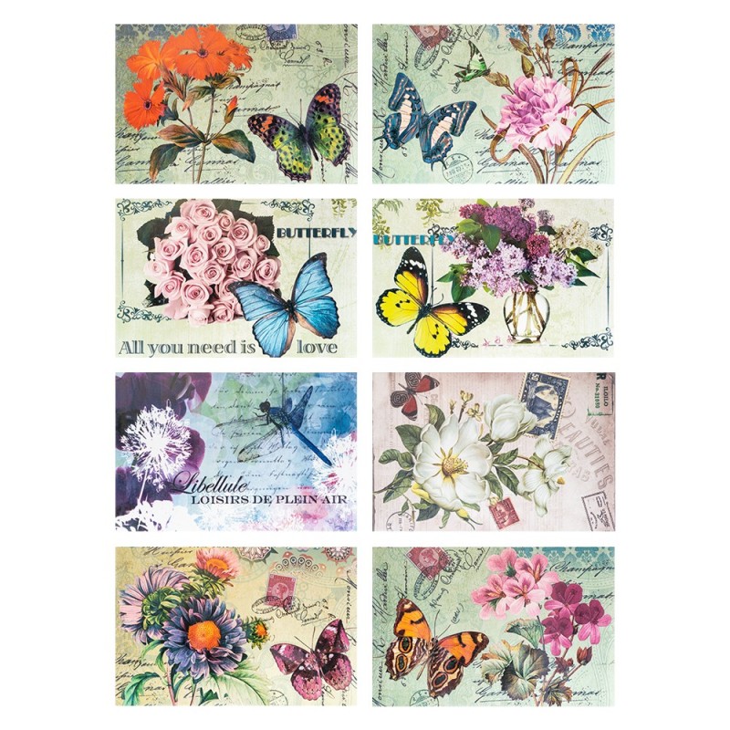 8 samoprzylepnych tkanin dekoracyjnych, vintage, każda o wymiarach 20 cm x 30 cm, 8 wzorów.