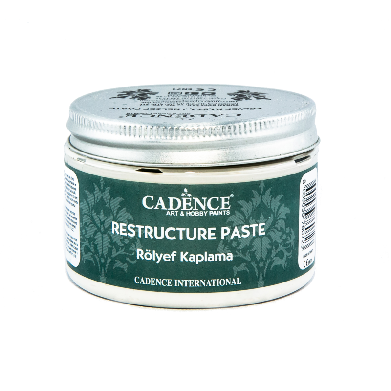 RESTRUCTURE to wodna pasta reliefowa, która staje się wyjątkowo mocna i sztywna gdy wysycha. Może być używana do restrukturyzacji powierzchni, tworząc dodatkowe warstwy na płótnie. Może być barwiona i szlifowana. Nietoksyczny. Certyfikat EN 71 i CE.