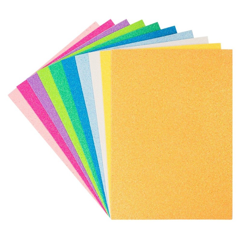 10 arkuszy pianki EVA samoprzylepnej, brokatowej, rozm. A4 o grubości 2 mm,