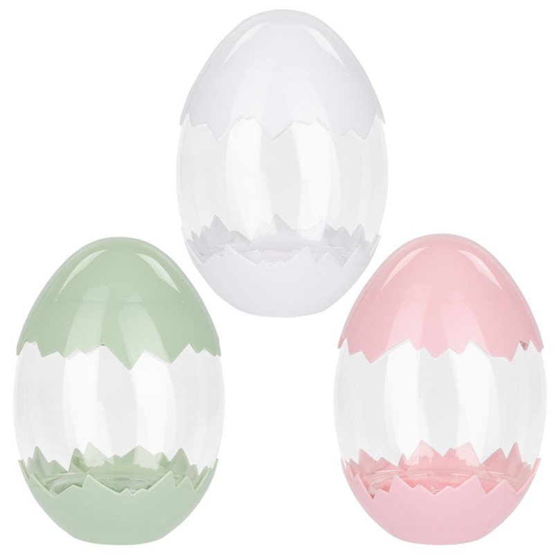 3 wysokiej jakości jajka dekoracyjne, pokrywka i spód o wyglądzie skorupki, Ø 7,7 cm, wysokość 11 cm, 3 kolory.