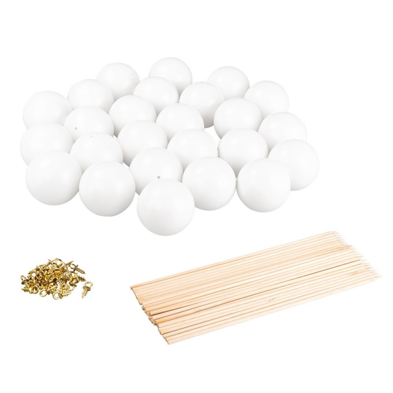 - 25 kulek dekoracyjnych w kolorze białym, Ø 5 cm, z wstępnie nawierconym otworem