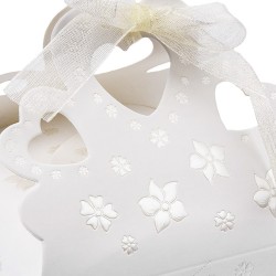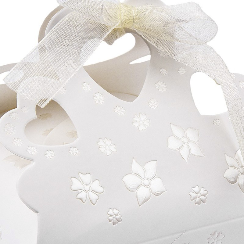 10 eleganckich dekoracyjnych pudełek składanych z wstążką z organzy, elegancką ozdobną krawędzią, wytłoczeniem z lakieru z masy perłowej i ozdobnymi wycięciami w kształcie serc, wykonane z wytrzymałej tektury (ok. 200 g/m²).