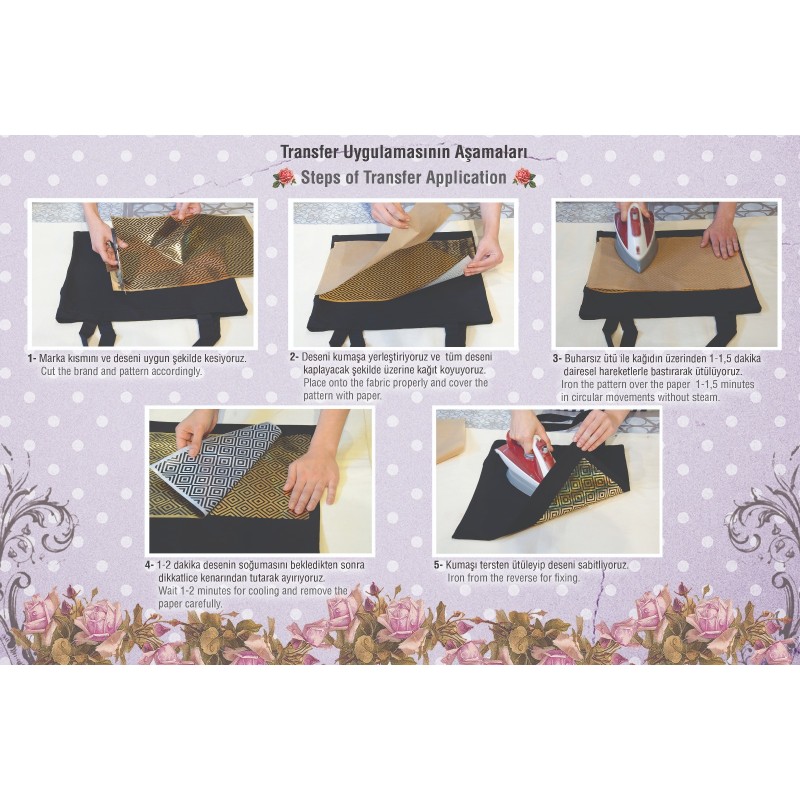 - Przyłożyć transfer wzorem do tkaniny,