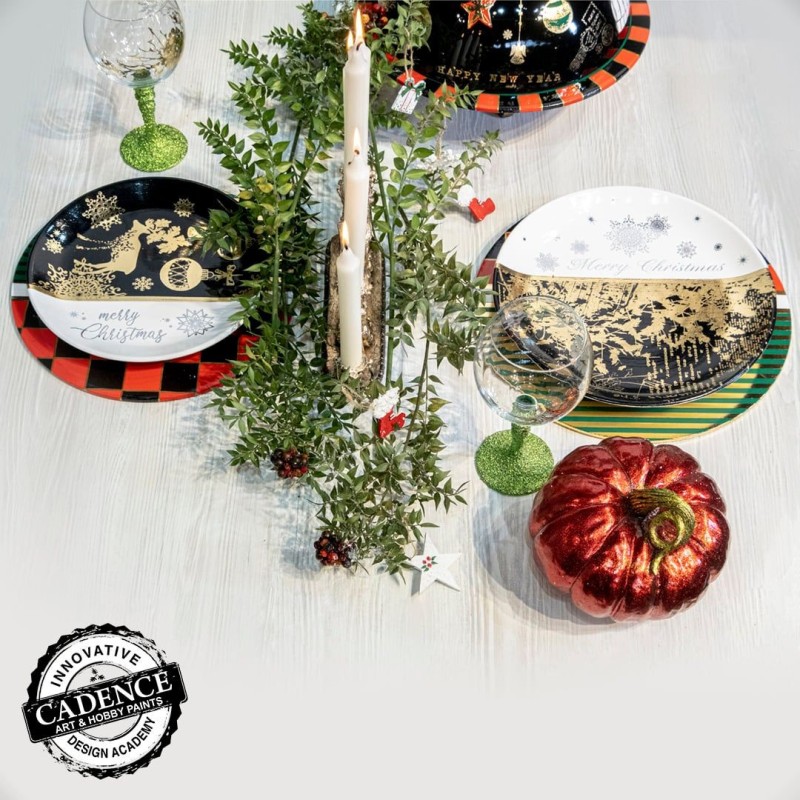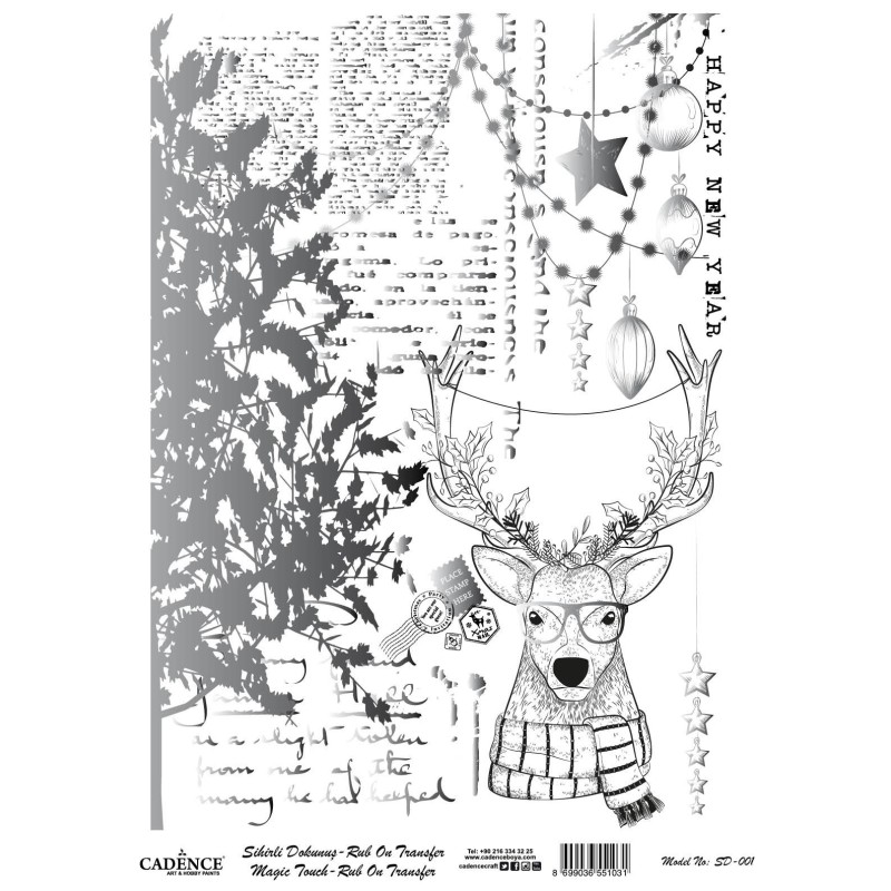 Metalizowany transfer Rub-on marki Cadence o wymiarach 30x42 cm to idealne rozwiązanie do świątecznych projektów dekoracyjnych. Wzory inspirowane Bożym Narodzeniem – takie jak choinki, śnieżynki, bombki, napisy „Merry Christmas” czy renifery – doskonale sprawdzą się w personalizacji przedmiotów oraz tworzeniu unikalnych dekoracji DIY. Transfer pokryty efektem metalicznym (złotym, srebrnym lub miedzianym) pięknie odbija światło, dodając elegancji i blasku każdemu projektowi.