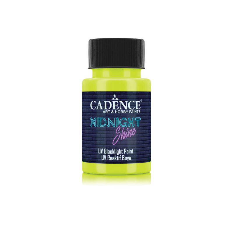 Nadaj swoim projektom unikalny, świetlny charakter z farbą akrylową Cadence Midnight Shine. Dostępna w intensywnych kolorach takich jak zielony, niebieski, cytrynowy czy różowy, farba wygląda efektownie w świetle dziennym, a w ultrafiolecie UV rozbłyska fluorescencyjnym blaskiem.