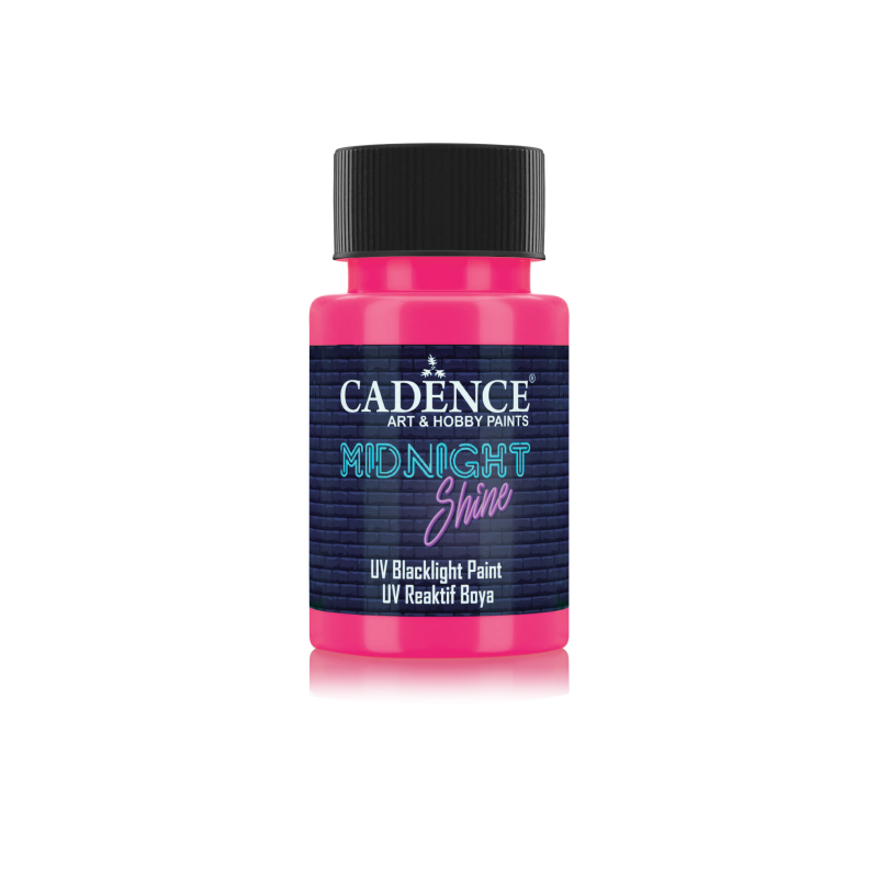 Nadaj swoim projektom unikalny, świetlny charakter z farbą akrylową Cadence Midnight Shine. Dostępna w intensywnych kolorach takich jak zielony, niebieski, cytrynowy czy różowy, farba wygląda efektownie w świetle dziennym, a w ultrafiolecie UV rozbłyska fluorescencyjnym blaskiem.