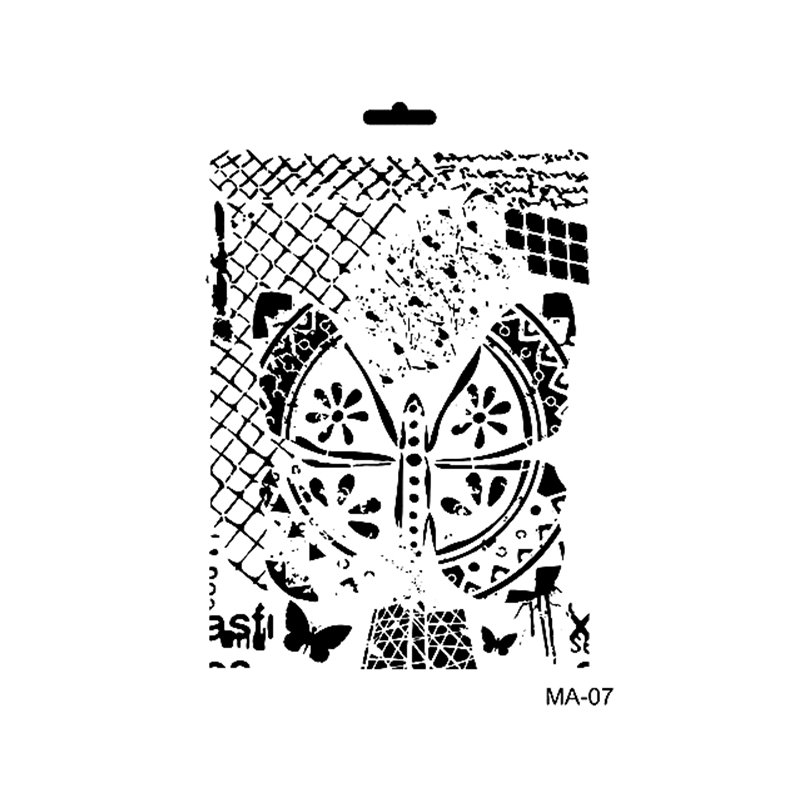 Szablony do stosowania na każdej powierzchni, wykonany z tworzywa, do wielokrotnego użycia.Kolekcja obejmuje szeroką gamę wzorów, idealnych do tworzenia kolarzy,dekoracji tkanin,dekoracji mebli, dekoracji ścian, dekoracji domowych itp.Po użyciu należy szablon umyć wodą oraz osuszyć.