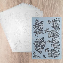 10 wysokiej jakości szablonów z tworzywa sztucznego "Ornamenty kwiatowe" do projektowania tekstyliów i prawie wszystkich gładkich i płaskich powierzchni, rozm. A4.