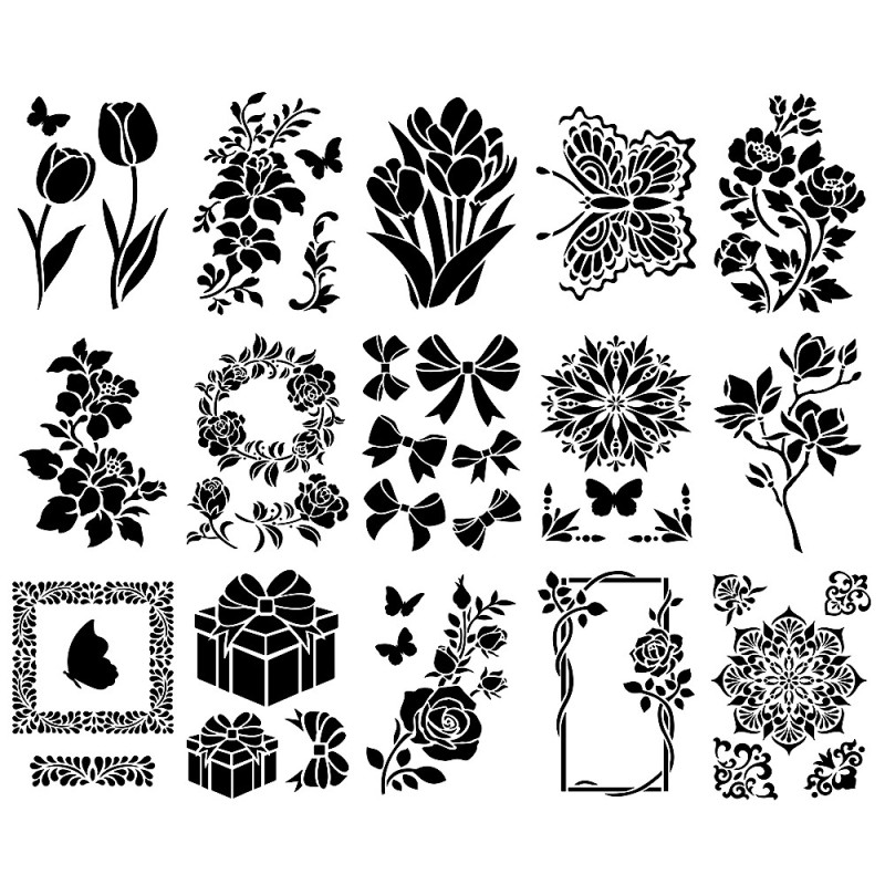 Szablony zestaw 15 szt, rozm. A5, kwiaty