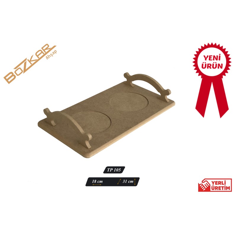 Taca z MDF, dwie podstawki pod kubki, rozm. 31 x 18 cm
