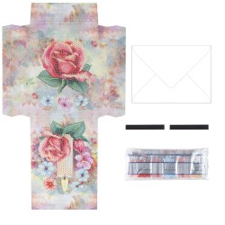Torebka prezentowa w formie kartki z obrazem diamentowym, Świeca i róża, gramatura 370 g/m², wysokość 36,5 cm, zawiera kopertę i pasek magnetyczny. Twórz wyrafinowane torby na prezenty w praktycznym formacie kartki okolicznościowej z pięknymi motywami malarstwa diamentowego. Otrzymasz również pasujące koperty, dzięki którym będziesz mógł od razu wysłać swoje gotowe dzieła sztuki. Aby wykonać torby na prezenty, wykonaj następujące czynności: Rozłożona torba na prezenty jest całkowicie pokryta folią ochronną, która chroni zarówno powierzchnie, które mają być pokryte kamieniami, jak i samoprzylepne zakładki po bokach. Aby móc ułożyć motyw, należy przeciąć folię na nieprzylepnym obszarze pomiędzy motywem a zakładkami samoprzylepnymi po lewej i prawej stronie. Teraz możesz odklejać folię z motywu kawałek po kawałku podczas nakładania kamieni, a samoprzylepne paski po bokach pozostaną chronione. Następnie całkowicie pokryj oba motywy kamieniami szlachetnymi. Aby to zrobić, wybierz kamienie, które chcesz umieścić zgodnie z nazwą. Każdemu wydrukowanemu numerowi przypisany jest odcień koloru. Usuń folię ochronną z motywu kawałek po kawałku i przykryj samoprzylepną powierzchnię kamieniami. Jeśli chcesz, możesz trwale umieścić kamienie za pomocą naszego najwyższej jakości uszczelniacza do kryształków. Po całkowitym rozłożeniu obu motywów złóż kartkę z życzeniami wzdłuż wstępnie rowkowanych linii. Złóż panel przedni i boczne do tyłu i zdejmij folię ochronną z zakładek samoprzylepnych. Teraz przymocuj elementy boczne do przodu, aby utworzyć kieszeń. Następnie złóż zakładkę zamykającą z przodu. Aby móc zamknąć torebkę prezentową klapką, należy przykleić jeden z samoprzylepnych pasków magnetycznych po wewnętrznej stronie klapki zamykającej oraz do torby. Oznacza to, że możesz otwierać i zamykać torbę wielokrotnie. Torba prezentowa idealnie nadaje się do pakowania małych i płaskich przedmiotów, zdjęć, prezentów pieniężnych lub samodzielnie zaprojektowanych kartek okolicznościowych. Twoja kreatywność nie zna granic! Uwaga: narzędzia nie są dołączone!
