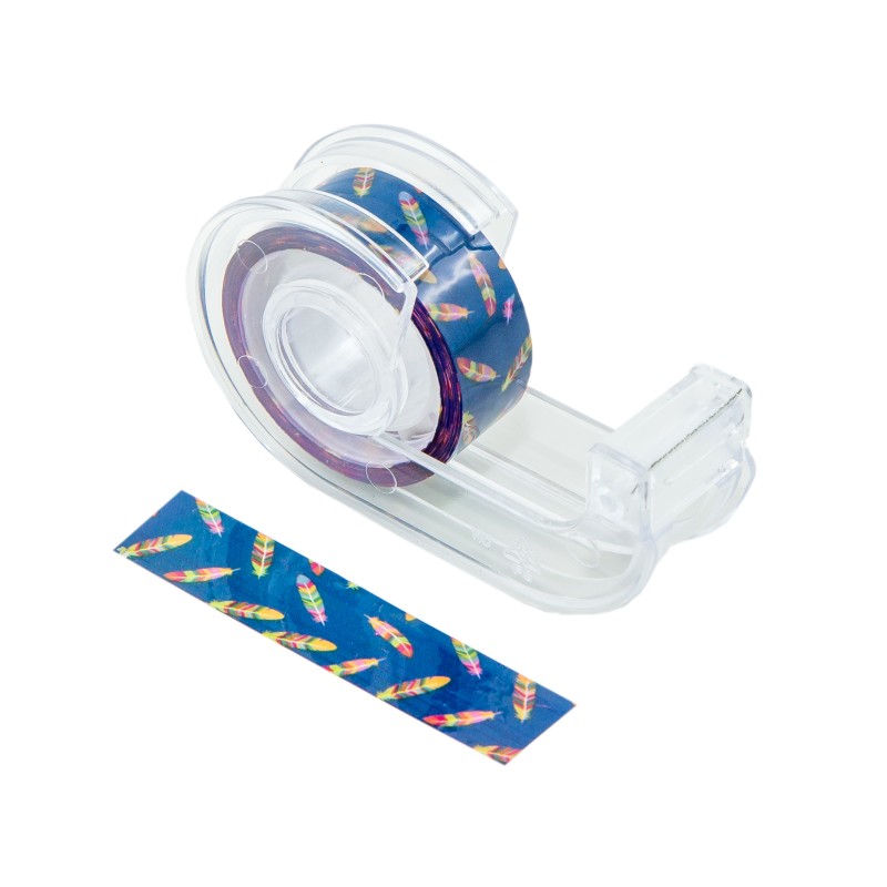 Taśma klejąca ozdobna z podajnikiem, Pióra, rozm. 1,5 cm x 10m