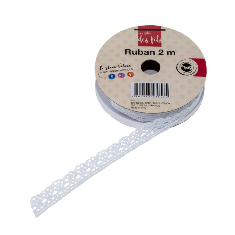 Bawełniana wstążka z efektem koronki kolor BIAŁY