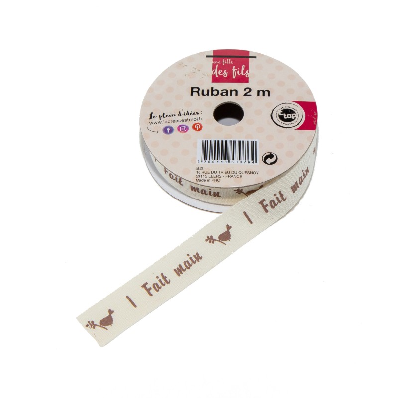 Bawełniana wstążka z nadrukiem FAIT MAIN ( RĘCZNIE WYKONNY ) kolor kremowy
