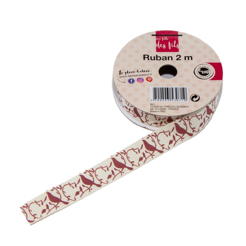 Wstążka bawełniana z nadrukiem, Ptaszki, 1,5cm x 2 metry