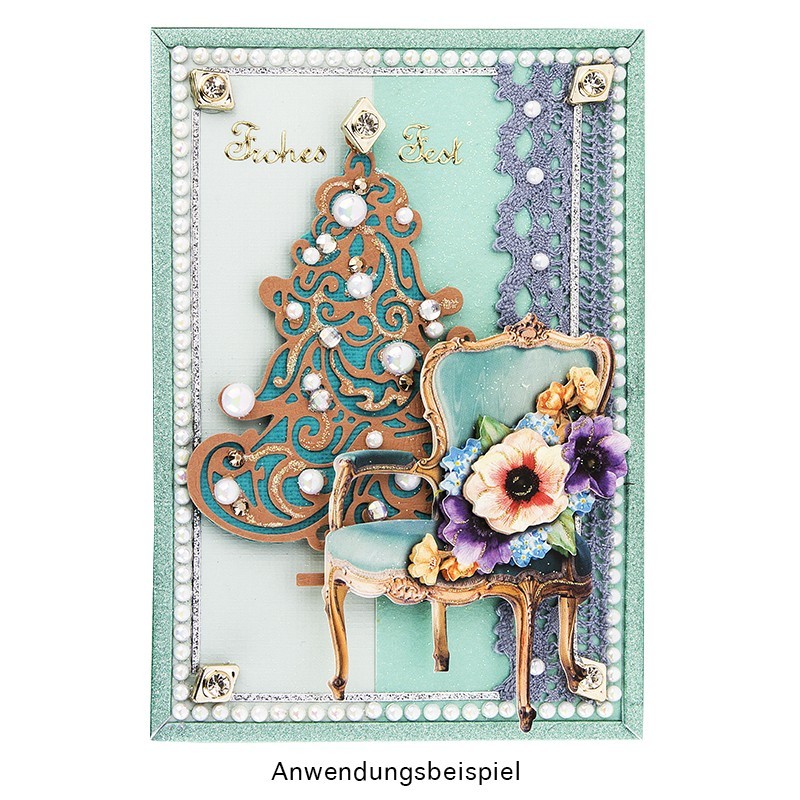 Umieść matrycę stroną tnącą do góry pod papierem, który ma być wycinany, i umieść wszystko między arkuszami plastikowymi zgodnie z instrukcją urządzenia. Teraz stos przechodzi przez maszynę zgodnie ze wskazówkami, a następnie usuwa się plastikowe arkusze i można usunąć gotowy wycięty wzór. Twórz własne kartki z życzeniami, albumy etc