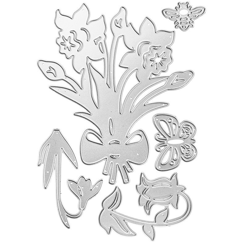 5 szablonów do wycinania ze stali, wiosenne kwiaty, pasujące do popularnych maszynek wycinająco- wytłaczających.