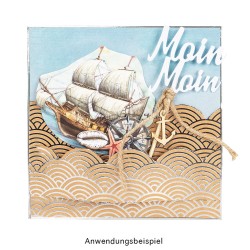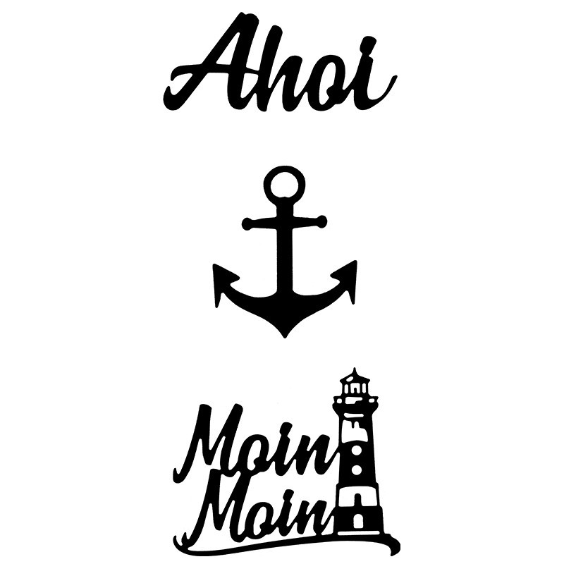 3 szablony do wycinania wykonane ze stali, morskie napisy AHOI, MOIN MOIN, odpowiednie do popularnych maszynek wycinająco-wytłaczających