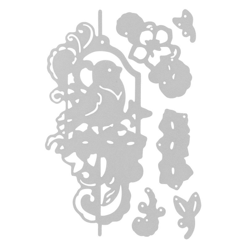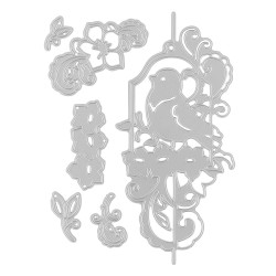 6 szablonów do wycinania wykonane ze stali, Ptaszek na huśtawce w kwiatach, odpowiednie do popularnych maszynek wycinająco-wytłaczających