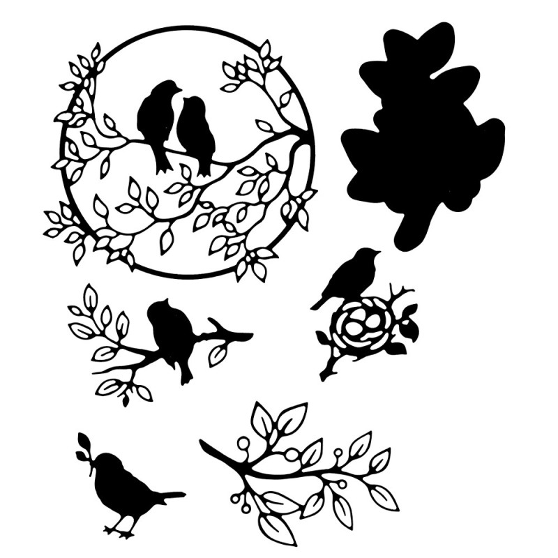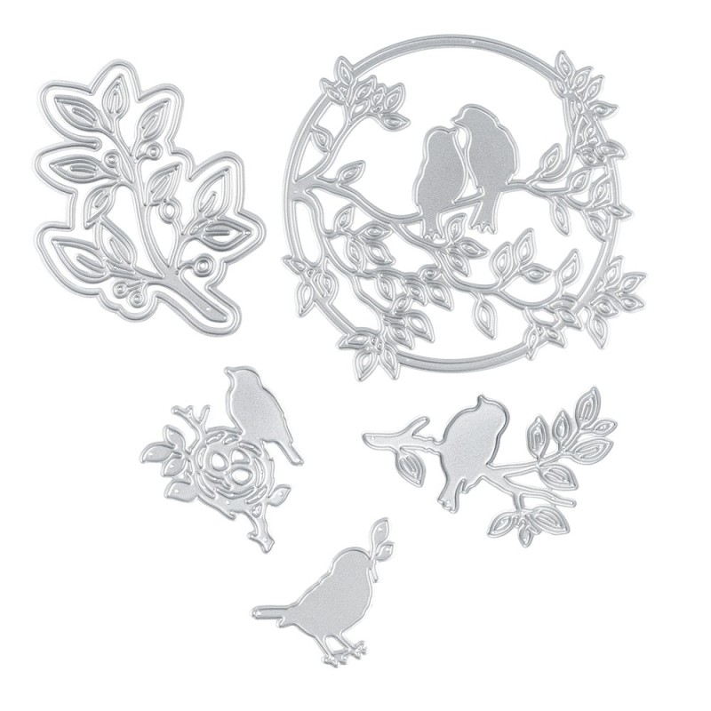 6 stalowych szablonów do wycinania, ptaki na gałązkach 2, odpowiednie do popularnych maszynek.