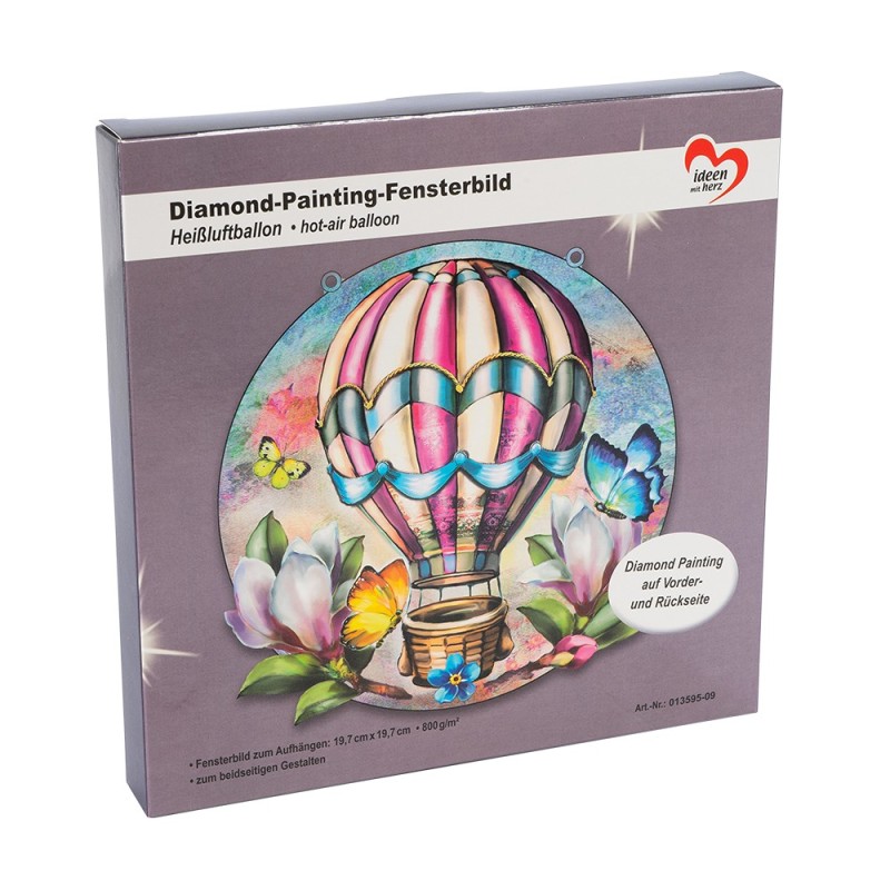 Dekoracja okienna do haftu diamentowego, Balon 19,7 cm x 19,5 cm, 800 g/m², dwustronny nadruk do dwustronnego pokrycia diamentowymi kamieniami malarskimi (w zestawie pasujące kamienie), z oczkami do zawieszenia.