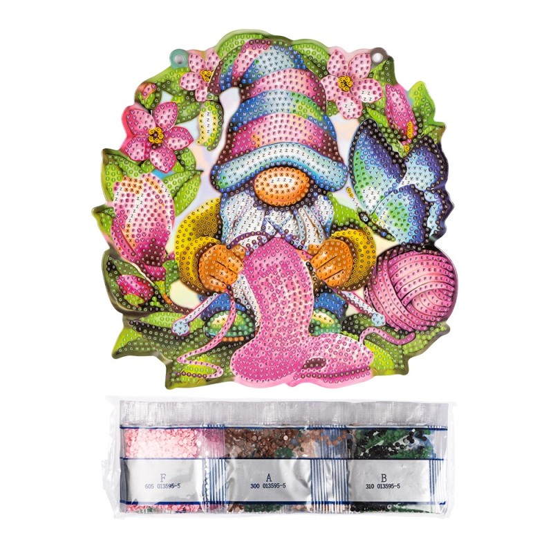 Diamond painting, dwustronna zawieszka do okna Krasnal, rozm. 19,8 cm