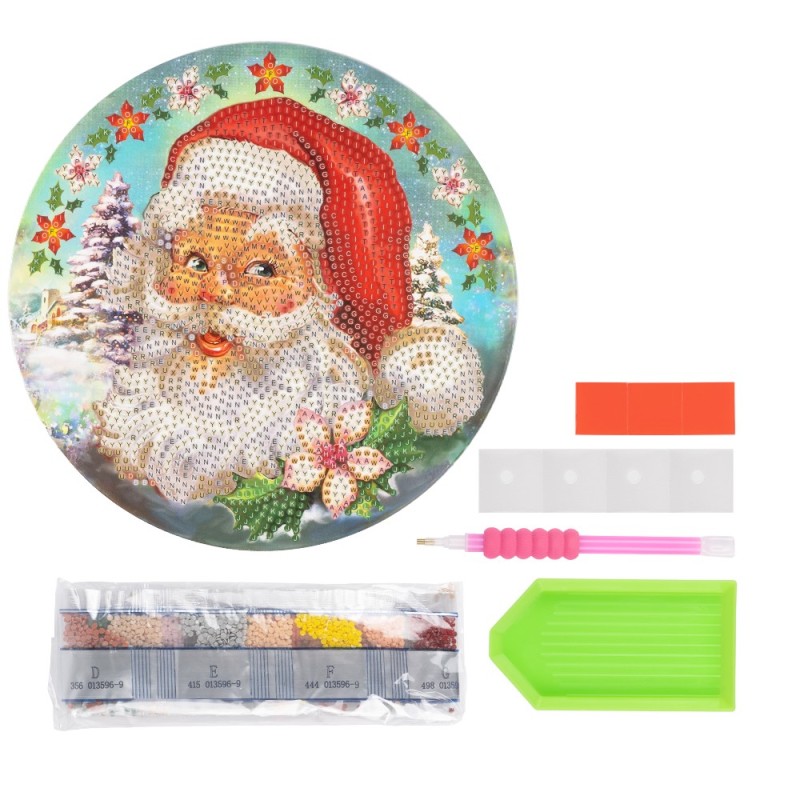Diamond painting, dwustronna zawieszka do okna, Mikołaj, rozm. 18,3 cm