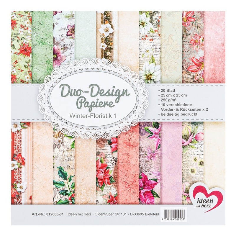 Zestaw papierów 20 kartek, zimowe kwiaty, 25x25cm