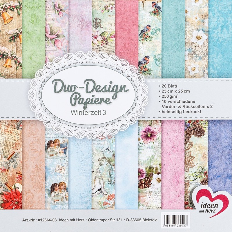20 arkuszy papieru Duo-desingn, dwustronnie drukowanych, wzory zimowe, 25 cm x 25 cm, 250 g/m².