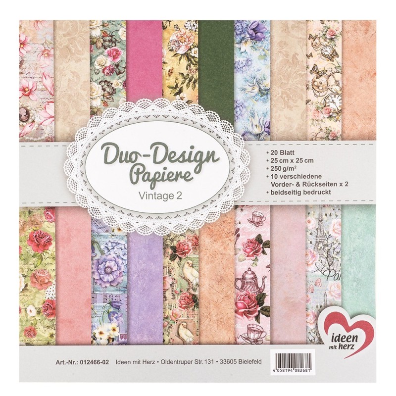 Zestaw papierów Vintage 2, 20 kartek, 25x25 cm